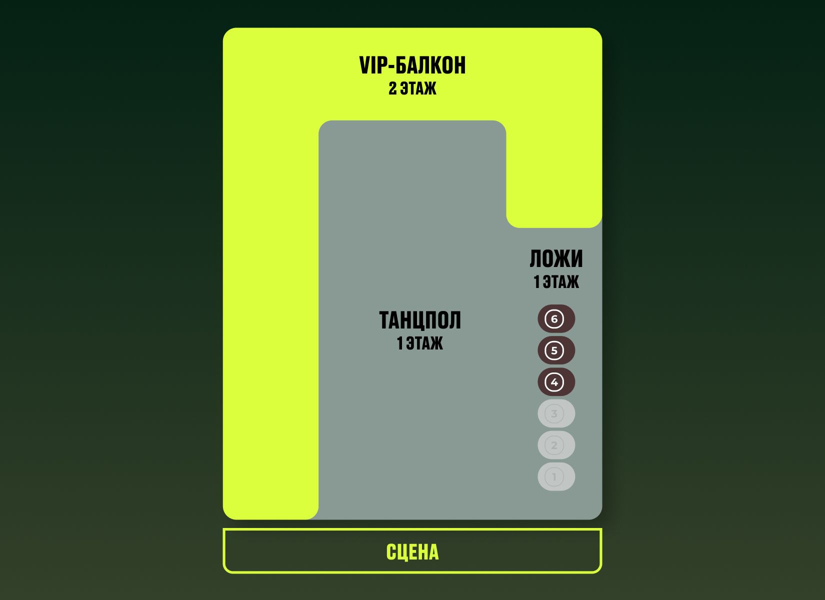 Танцпол — доступ на танцпол. Погрузитесь в атмосферу живого выступления артистов на танцполе! Это идеальное место для тех, кто хочет быть в центре событий и ощущать энергетику музыки.